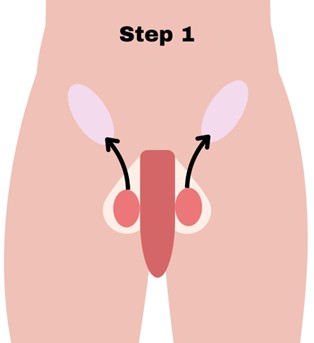 Use gentle pressure and guide each twin, one at a time, upwards into the inguinal canals. This might feel weird at first. It should not hurt. If you feel pain, stop and try again later. Some people find it easier to do this while lying down. Gravity can help you!